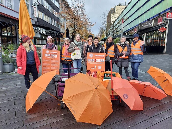Soroptimistinnen setzen auf Prävention – beim diesjährigen Tag gegen Gewalt an Frauen brachten wir am 25. November 2023 diese Botschaft in die Bochumer Fußgängerzone. Wir vom SI-Club Bochum wurden unterstützt von Clubschwestern des SI-Clubs Bochum-Witten und den „Catcalls of Bochum“, die durch „ankreiden“ sexuell anzügliche Belästigung von Frauen in der Öffentlichkeit buchstäblich sichtbar machen.